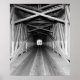 A photograph of Jackson Covered Bridge spanning Sugar Creek near Bloomingdale, Indiana. The Jackson Bridge was built in 1861 by J.J. Daniels. It spans Sugar Creek and is of double Burr construction. It has survived all major floods. This includes the flood of late March, 1913; although the accompanying hurricane force winds did strip the roof of its wood shingles. This bridge has the unusual feature of a corner stone which bears this inscription: "Builder J.J. Daniels 1861." The Jackson Bridge, which spans 207 feet, is the third longest single-span covered bridge in the United States, but is the longest single-span still in use.Jackson Bridge is the oldest surviving example of the work of J.J. Daniels, one of Indiana's most prolific covered bridge builders. It is an outstanding example of the truss system patented by Theodore Burr in 1806. With a span of 207', the Jackson Bridge is the nation's longest single span bridge that still carries vehicular traffic.