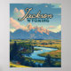 Jackson Hole Wyoming Ranch Tetons Mountains Retro Poster