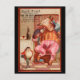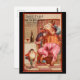 This Jacob Feigel, manufacturer & dealer in fine and heavy harness and more, has a brown and white faced cow, dressed in vintage, victorian, striped clothing and blue coat sitting in a chair with a magnifying glass. He's looking at a frog in a red coat holding a top hat standing upright. The cow has one foot on a footstool, and a table next to him with a bottle and a clear glass of something red. A colourful advertisement that can be sent to any vintage, victorian, or farm advertisement lover.
