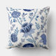 Jacobean Floral 2Way Pattern Blues on White Cushion