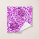 Towel set in a William Morris wallpaper design of flowers in deep amethyst purple and orchid pink, with soft lilac, leafy vines, against a white background
