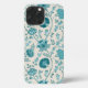 Jacobean Floral Big Pattern Teals on Cream iPhone Case