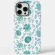 Jacobean Floral Big Pattern Teals on White Case-Mate iPhone Case