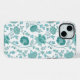 Jacobean Floral Big Pattern Teals on White iPhone Case