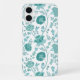 Jacobean Floral Big Pattern Teals on White iPhone Case