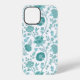 Jacobean Floral Big Pattern Teals on White iPhone Case