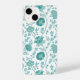 Jacobean Floral Big Pattern Teals on White iPhone Case