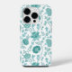 Jacobean Floral Big Pattern Teals on White iPhone Case