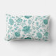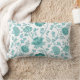 Jacobean Floral Big Pattern Teals on White Lumbar Cushion