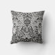 Throw pillow in a vintage William Morris jacobean floral pattern, digitally enhanced and coloured, in black and silver grey on a white background