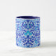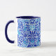 Mug in a vintage William Morris jacobean floral pattern, digitally enhanced and coloured, in cobalt blue and turquoise on a white background