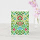 Card in a vintage William Morris jacobean floral pattern, digitally enhanced and coloured, in leaf green, coal red, and cerulean blue, on a white background