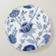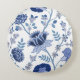 Jacobean Floral Lg Pattern Blue on White Round Cushion