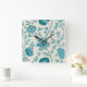 Jacobean Floral Lg Pattern Teals on Cream Square Wall Clock