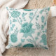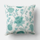Jacobean Floral Lg Pattern Teals on White Cushion
