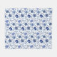 Jacobean Floral Pattern Blue on White Fleece Blanket