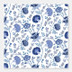 Jacobean style floral large surface pattern design in contrasting blues on a white background.