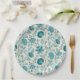Jacobean Floral Pattern Teals on Cream Paper Plate