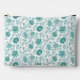 Jacobean Floral Pattern Teals on White Accessory Pouch