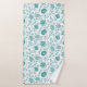 Jacobean Floral Pattern Teals on White Bath Towel