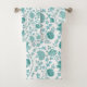 Jacobean Floral Pattern Teals on White Bath Towel Set