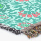 Throw in a William Morris wallpaper design of flowers in turquoise and real, accented with coral orange and lime green, against a pastel aqua background
