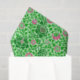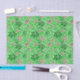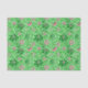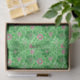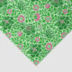 Tissue paper in a William Morris wallpaper design of flowers in deep emerald and lime green, accented with fuchsia pink, against a pastel green background