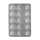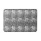 Bath mat in an Art Nouveau, Jacobean damask pattern of stylised, scrolled leaves and flowers, based on a vintage William Morris textile design, digitally enhanced and coloured in light silver to deep graphite grey, accented with white flowers