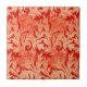 Ceramic tile in a Jacobean damask pattern of stylised, scrolled leaves and flowers, based on a vintage William Morris textile design, digitally enhanced and coloured in pastel to medium coral orange on a deep mandarin orange background