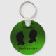 JADE ANNIVERSARY-KEYCHAIN--ON BRUSHED JADE--GENT AND LADY IN SILHOUETTE WITH A BEACH AND DUNES SUNRISE-ADD YOUR OWN DATE OR QUOTE--MAKES A GREAT GIFT.