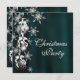 Jade green teal blue black white snowflakes tree ornaments corporate Christmas party invitations.