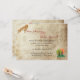 Jaded story book like texture background wedding invitation with a cute cartoon of a fairy tale castle that communicates a sense of romance. Customisable for wedding details.