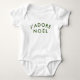 Simple, stylish J'adore Noel" quote art baby bodysuit with modern, minimalist typography in forest green in a trendy festive style. The quote translates to "I love christmas" in French. The perfect gift or accessory for the xmas season!