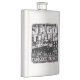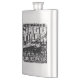 The product is a good size and came exactly as it was pictured. The lid is not attached to the flask, which could be dangerous on drunken nights... The print came out surprisingly well and looks very sharp. Would definitely recommend.