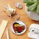 Floral heart work! A premium round keyring with a colourful rose and daisy flower bouquet photograph cut into a jagged edge heart shape over a transparent background. Click "Customise it!" to add text and to select a background colour other than white under "Edit" then "Background.