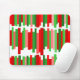 This mouse pad has a Christmas pattern of lines in red and green in varying lengths.