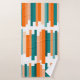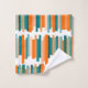 This towel set has a pattern of lines in teal and orange in varying lengths.