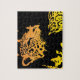 8” x 10” jigsaw puzzle with a contemporary image of a handsome jaguar on black.