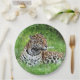 Set of eight 9” paper plates with an image of a handsome jaguar lying in the grass. The jaguar is a near threatened species and its numbers are declining. See matching flask, shot glass and coasters. See the entire Safari Plate collection in the FOOD/BEV | Dishes section.