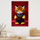A cute and adorable plush toy Jaguar in a black and red ninja clothes. This is a AI generated art.