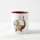 A duo-toned coffee mug embellished with a festive "Dahlia" themed monogram