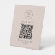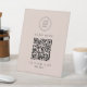 This business QR Code menu pedestal sign features a blush background and modern sans serif font. Add your own logo and business menu website to create a custom piece for your business.