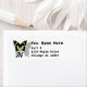 Jamaica Butterfly with the wing spread flying over its shadow. Within the shadow a M, the m is short for monogram and can be personalised for your initial.
