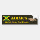 Jamaican flag and map design with alterable text on a durable 4mil thick vinyl bumper sticker.