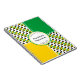 Stylish notebook with map outline of the flag of JAMAICA in a tiled pattern, plus complementary panels. Centre has area with customisable placeholder text for name or subject matter. Curved text at top and bottom can also be customised with text of similar length. Can be personalised with name and year of church or school group or class.