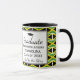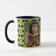 Stylish modern Graduation Mug with customisable text and photo. Background shows the FLAG OF JAMAICA in a tiled pattern. Design shows placeholder image on the left and add your personal message on the right, plus customisable text which reads TO GOD BE THE GLORY. Black border with small graduation topper motif. An ideal gift for graduates.