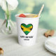 Jamaica paper cup with heart shaped green, black, and gold Jamaican flag. Great party cup for Jamaican themed events for women and girls. Customise the text with your own personal details: name, business branding, event info, etc.