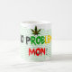 A mug containing the map of Jamaica with the words no problem mon written in it and a Jamaican herb leaf at the top front centre of the mug