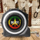 Jamaica tape measure with a Jamaican Rasta colour peace sign symbol and black customisable text "one love". Green, red, and gold colour scheme. Great for loves of island / Caribbean culture.