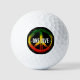 Jamaica golf balls with a Jamaican Rasta colour peace sign symbol and black customisable text "one love". Green, red, and gold colour scheme. Great for loves of island / Caribbean culture.